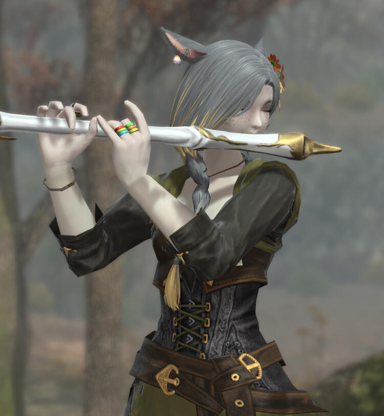 Found in the Shroud and adopted in infancy by Hyur artisans, Sohna was raised in Gridania, away from traditional Keeper culture.Sohna learned after the Calamity that she is a wildling; the bells they hear at all times are the elementals, constantly calling her back to their side.No one, not even E-Sumi-Yan, knows what she might have done to draw the elementals' attention. Stillglade Fane kept a close eye on her throughout her youth.